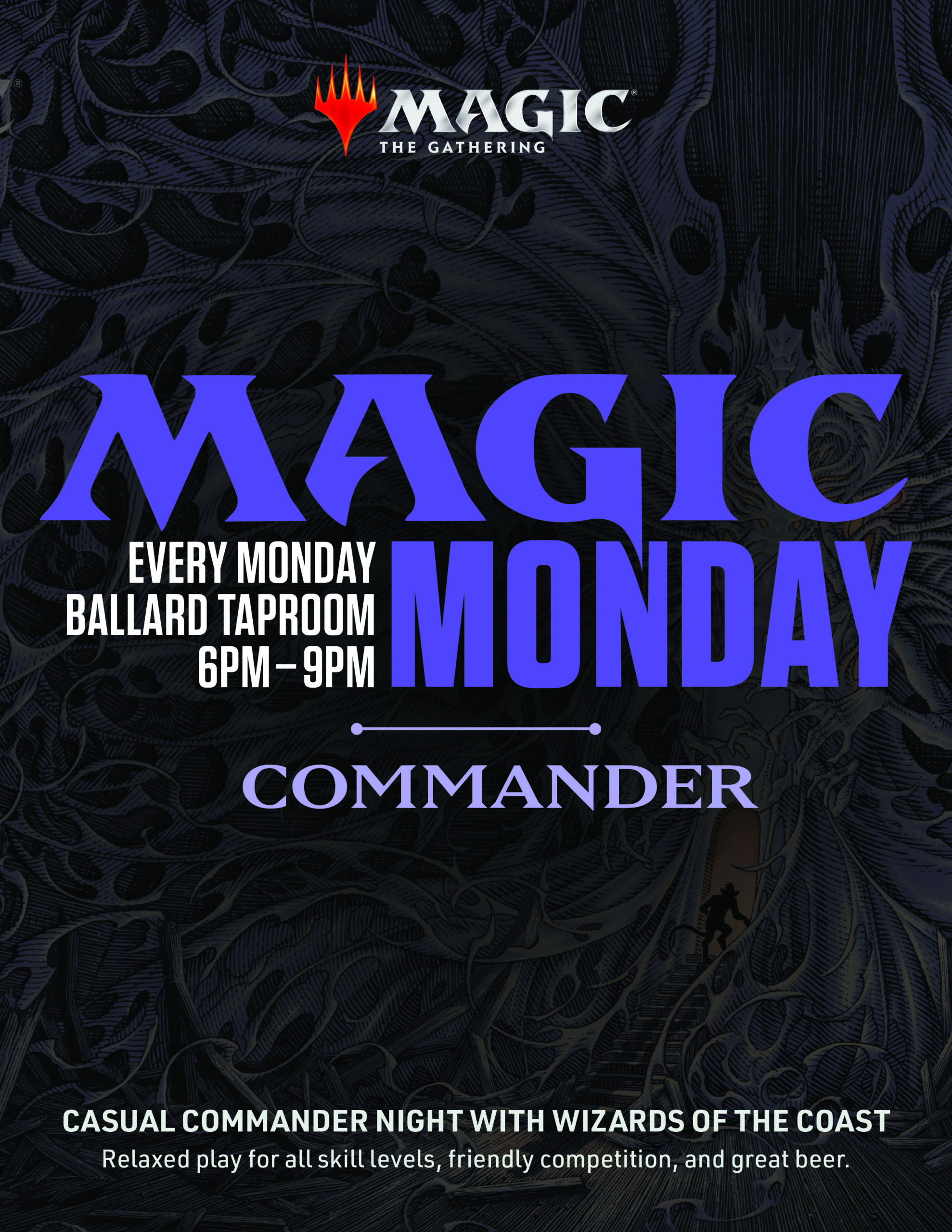 Join us at the Reuben’s Brews Ballard Taproom for a casual Commander night with Wizards of the Coast.